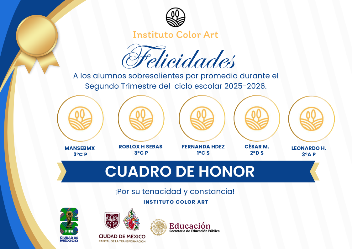 CUADRO DE HONOR A ALUMNOS CON PROMEDIO DE 10 EN EL SEGUNDO TRIMESTRE 2025-2026.